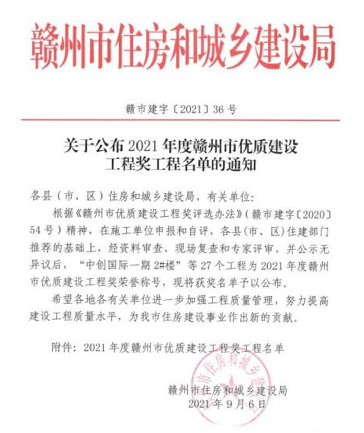日前,贛州市住房和城鄉(xiāng)建設(shè)局公布了2021年度贛州市優(yōu)質(zhì)建設(shè)工程獎工程名單,由贛州城投集團(tuán)承建的贛南職業(yè)技術(shù)學(xué)院、贛州市中心城區(qū)贛南大道快速路工程一標(biāo)段(新世紀(jì)大橋至章江大橋西側(cè))、贛州市迎賓大道(含飛翔路段)及文明大道快速路工程二標(biāo)段、高架主干路網(wǎng)建設(shè)工程(贛州市客家大道西延高架段)、東江源大道北延(105國道和樂段)市政道路工程共5個項(xiàng)目獲獎。