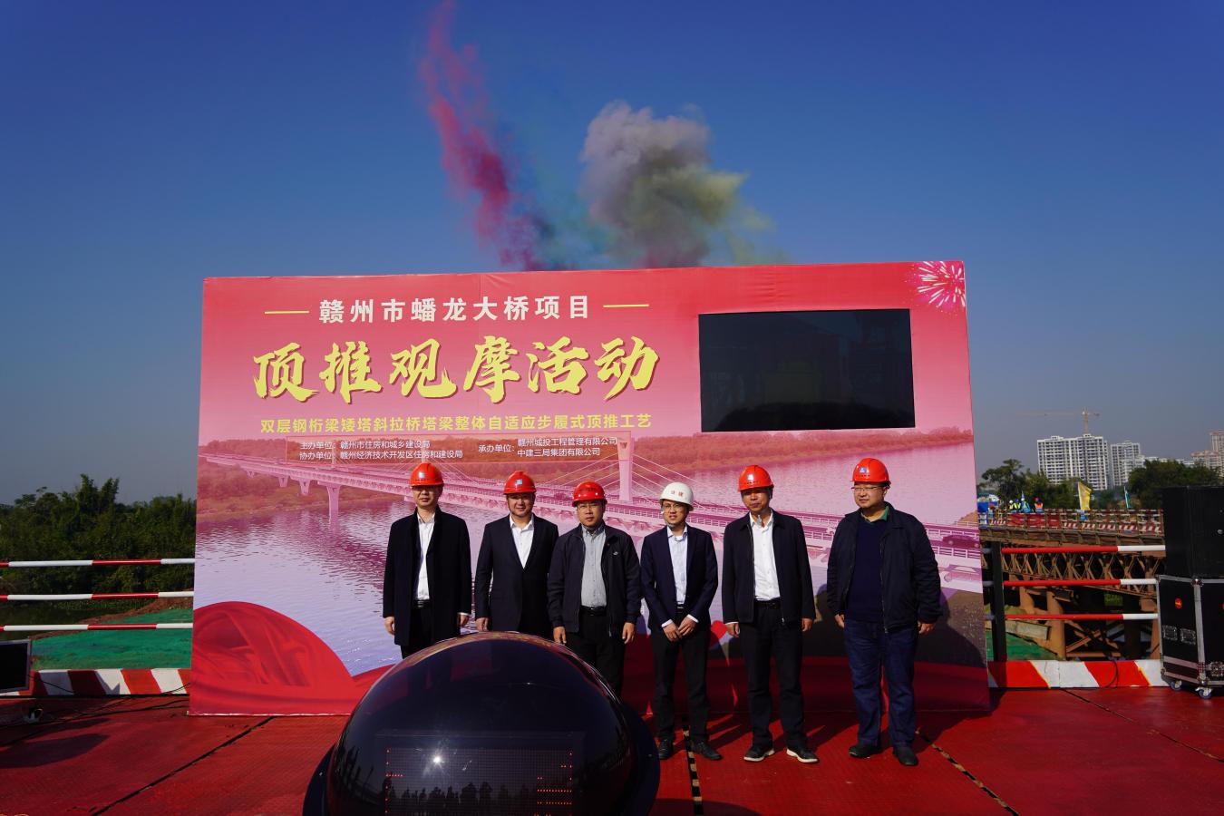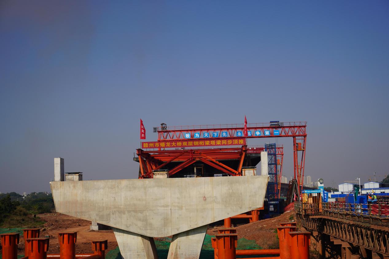 12月6日,贛州市蟠龍大橋項目主橋鋼結(jié)構(gòu)首次頂推啟動,為主橋的順利推進打下堅實基礎(chǔ),標(biāo)志著該項目取得了全市重點項目建設(shè)百日攻堅活動任務(wù)目標(biāo)的節(jié)點性勝利。贛州經(jīng)濟技術(shù)開發(fā)區(qū)住房和建設(shè)局,贛州城投工程管理公司、中建三局總承包公司等參建各單位代表共計60余人參加頂推啟動活動。
